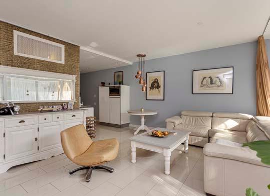 De woonkamer is heerlijk licht dankzij de grote raampartijen. De strakke wanden en licht betegelde vloer geven de ruimte een nette uitstraling. Hier is genoeg plaats voor een gezellige zithoek waar je heerlijk kunt ontspannen terwijl je naar je favoriete tv-programma kijkt.