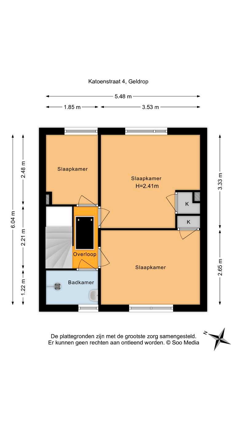 Op de eerste verdieping bevinden zich drie slaap kamers en een badkamer. De slaapkamers zijn van goed tot ruim formaat en voorzien van mooie grote ramen.