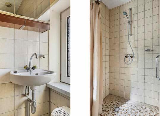 De badkamer is wederom eenvoudig en voorzien van een wastafel en een douche.