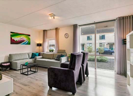 De woonkamer heeft een royale uitbouw ondergaan, waardoor er een zee van ruimte is ontstaan. Dit extra leefgedeelte is perfect voor gezellige familieavonden of om vrienden te ontvangen. De grote ramen zorgen voor veel natuurlijk licht en een prettige verbinding met de tuin, wat het gevoel van binnen-buiten wonen versterkt.