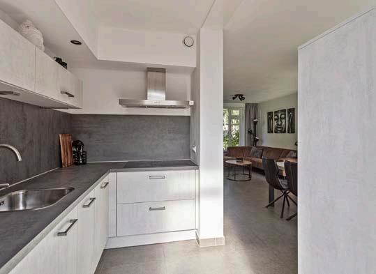 Stap binnen in een woonkamer die direct klaar is om je te verwelkomen. Deze prachtige ruimte is voorzien van een stijlvolle tegelvloer die niet alleen een moderne uitstraling biedt, maar ook gemakkelijk schoon te houden is. De vloerverwarming zorgt ervoor dat je voeten altijd warm blijven, zelfs op de koudste winterdagen. Het neutrale kleurenschema maakt het eenvoudig om je eigen persoonlijke touch toe te voegen met meubels en decoraties. Hier kun je ontspannen, genieten van een filmavond met het gezin, of gasten ontvangen in een sfeervolle omgeving.