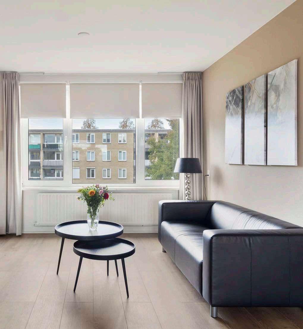 De woonkamer is het kloppend hart van het appartement, waarin het rijke daglicht je meteen verwelkomt. Met voldoende ruimte voor een gezellige zithoek en een fijne eethoek, is deze leefruimte perfect voor zowel ontspanning als sociale bijeenkomsten. Hier kun je je eigen stempel drukken en een plek creëren die aanvoelt als jouw persoonlijke oase. Nodig vrienden uit voor een diner of geniet van een rustige avond met een goed boek.