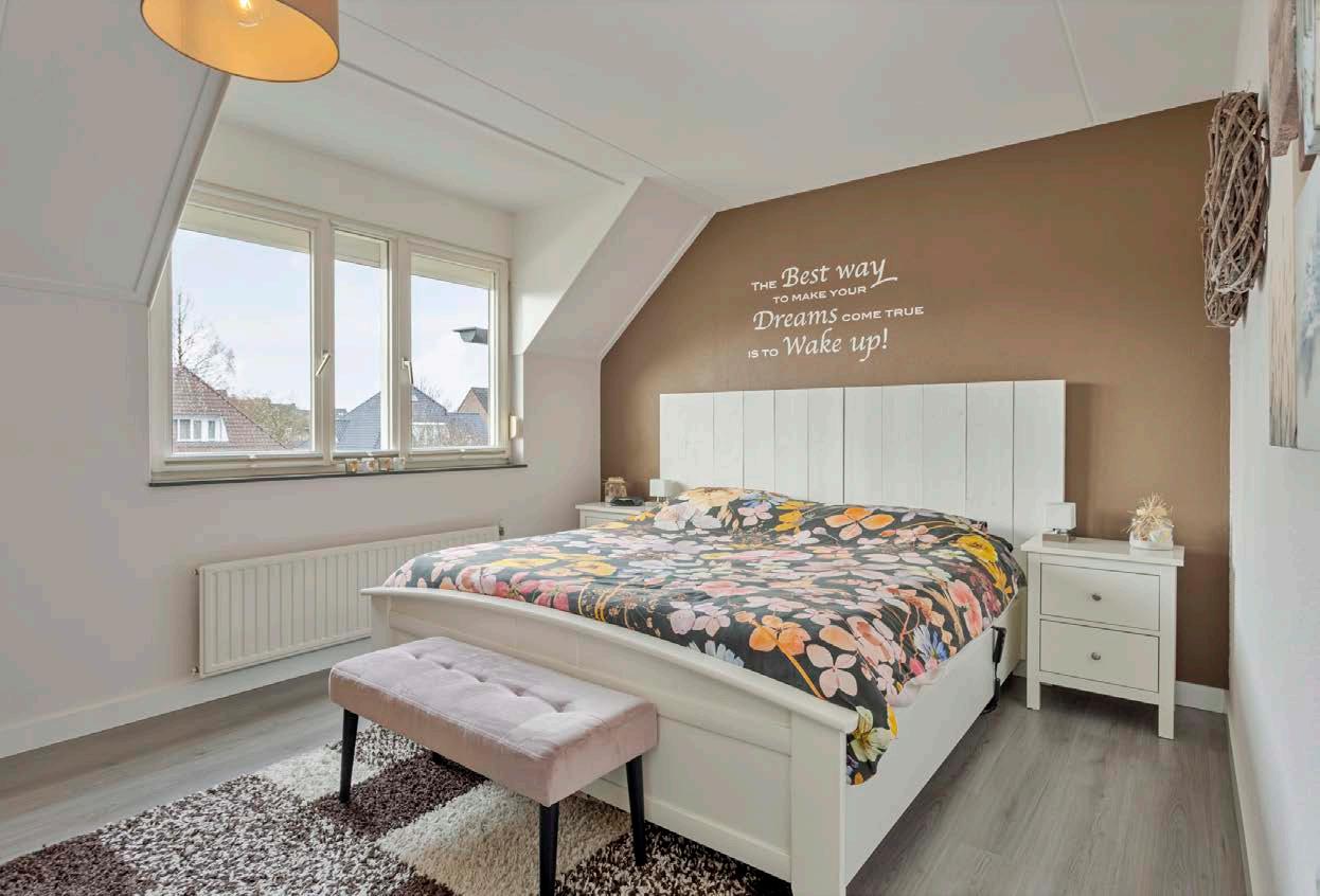 Middels de vaste trap komen we op de eerste verdieping waar drie slaapkamers en de badkamer zijn gesitueerd. De slaapkamers zijn stuk voor stuk ruim, keurig afgewerkt met een laminaat vloer en lichte wanden en voorzien van veel lichtinval. Weet jij al hoe je de kamers gaat indelen?