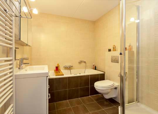 De badkamer is van grond tot plafond betegeld en oogt hiermee verzorgd. Daarnaast is de ruimte ingericht met een tweede toilet, wastafel, douche en bad.