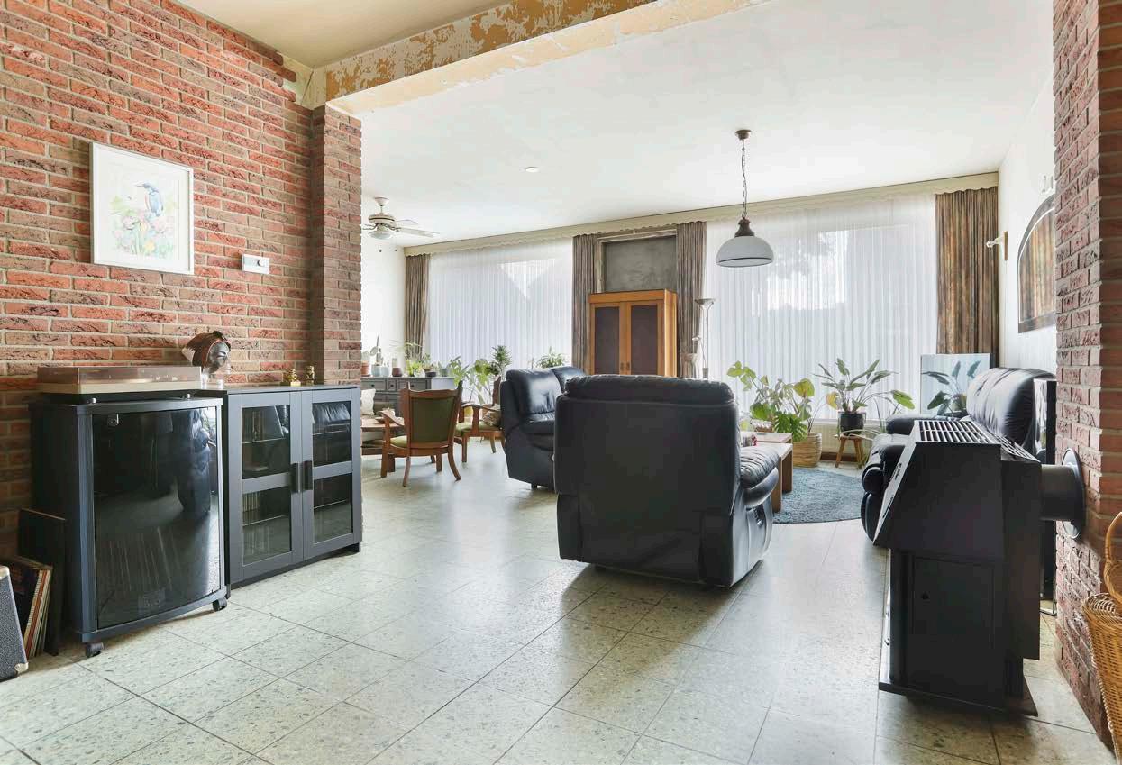 De woonkamer is van zeer ruim formaat en afge werkt met een tegelvloer. Het daglicht valt rijkelijk naar binnen via de grote ramen met zicht op de straatzijde.