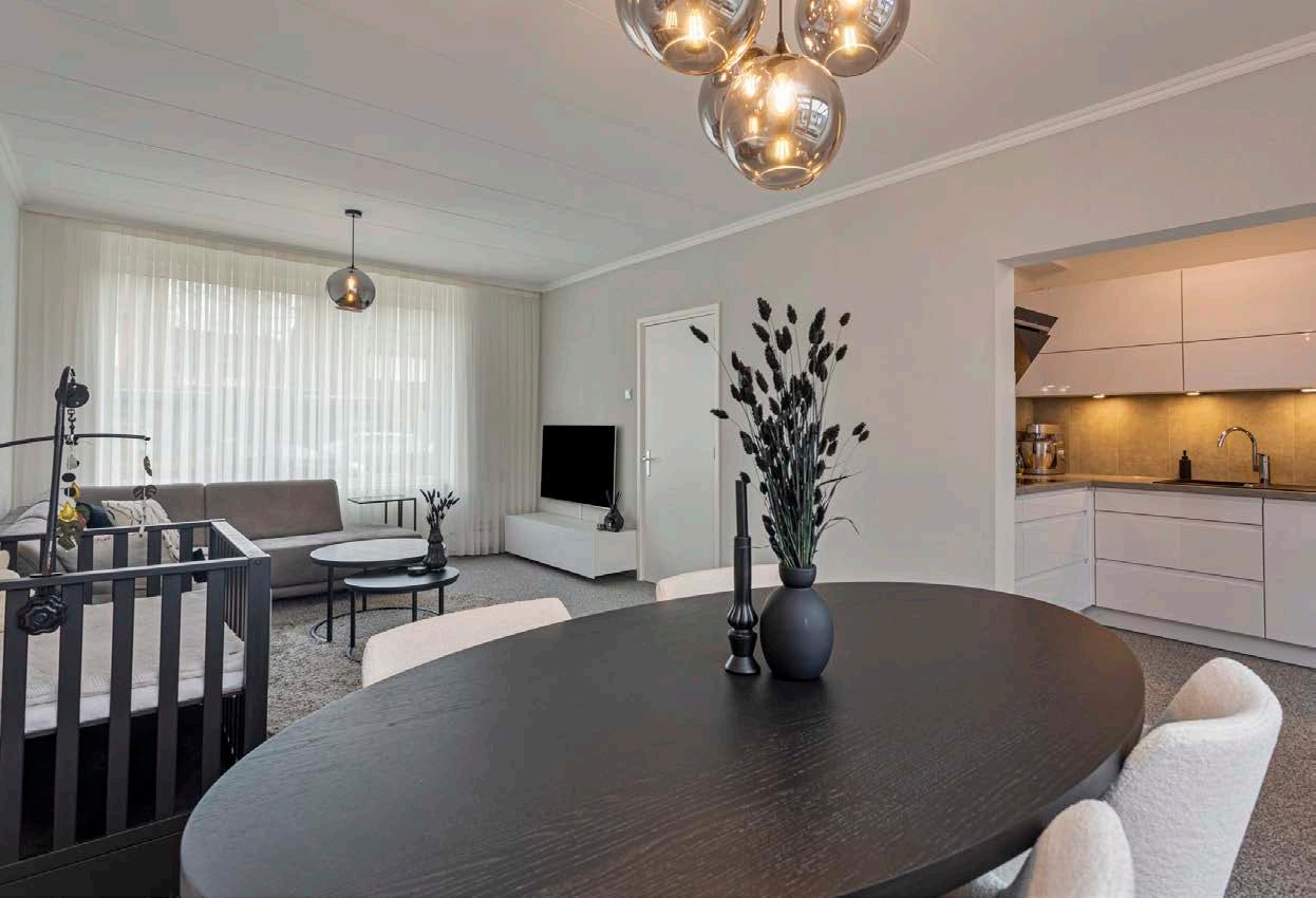 De moderne open keuken grenst aan de woonkamer en is voorzien van het nodige kookcomfort, te noemen: een inductiekookplaat, afzuigkap, koelkast, vaatwasser en een oven. Vanuit de keuken krijg je tevens toegang tot de onderhoudsvriendelijke tuin met overkapping, zo kun je de tuin eenvoudig bij de keuken betrekken.