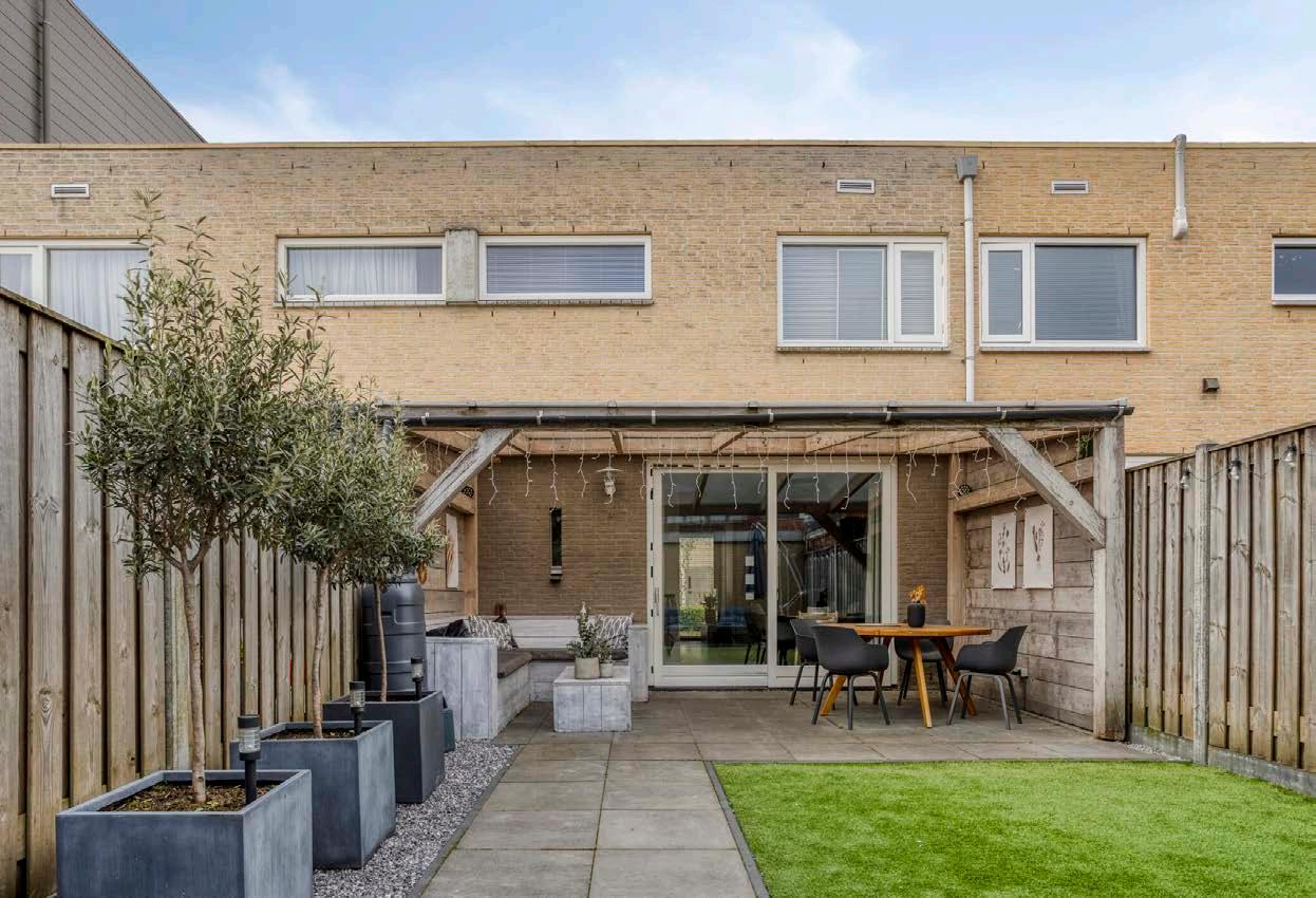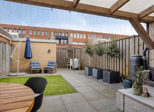 Loop je via de lichte schuifpui naar buiten, dan wacht de fijne achtertuin op je, compleet met een hoogwaardige houten overkapping. Regen of zon: hier kun je het hele jaar door genieten van jouw eigen stukje buitenplezier. De tuin is strak en modern aangelegd. Er is ook een stenen berging en achterom, wat de tuin niet alleen mooi maakt, maar ook handig.