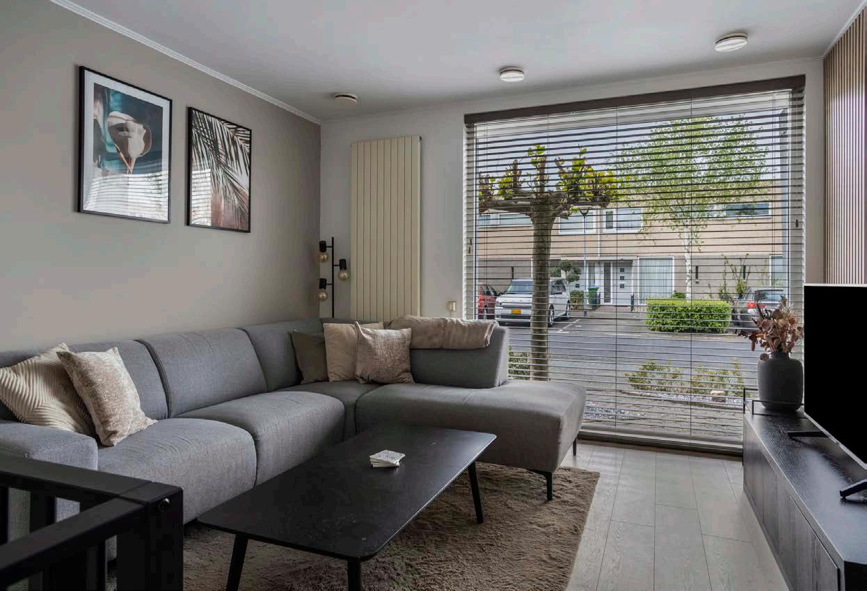 De woonkamer is een fijne plek, met een grote raampartij die zorgt voor een heerlijke lichtinval. Zie je jezelf al zitten met een mok thee op de bank of misschien met vrienden aan de eettafel voor een gezellig diner?