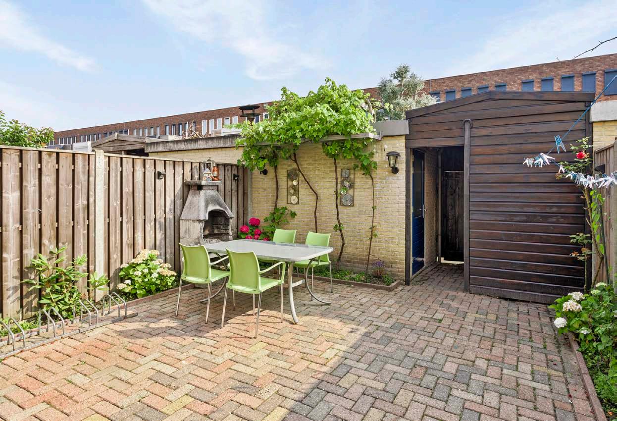 De tuin, gelegen op het noordoosten, is een fijne plek om de dag te beginnen met een kop koffie of om ‘s avonds te ontspannen. De wijk zelf is rustig en populair, met veel groen in de buurt en waterpartijen.