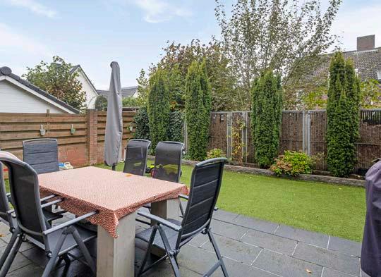 De tuin op het noordwesten is een onderhoudsvrij paradijs, met kunstgras dat het hele jaar door een groene uitstraling biedt en een terras dat uitnodigt tot lange avonden vol gezelligheid.