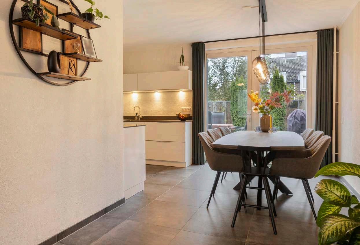 Stap binnen in deze prachtige woning en voel direct de warme omarming van een thuis dat met liefde en aandacht is ontworpen. De sfeervolle L-vormige woonkamer is het hart van het huis, een plek waar je de zorgen van de dag van je af laat glijden in de comfortabele zithoek. De openslaande tuindeuren verbinden de kamer met de fijne tuin.
