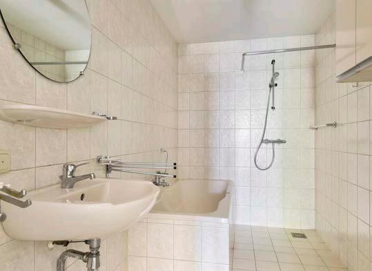 En dan is er nog de badkamer. Een fijne ruimte die van grond tot plafond is betegeld in een lichte kleur en daarmee een verzorgde indruk maakt. De inde ling bestaat uit een ligbad, inloopdouche en een wastafel.