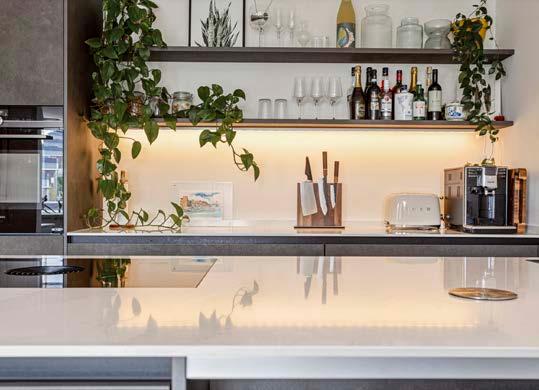 De keuken is een echt pronkstuk in dit appartement. De moderne en strakke afwerking in combinatie met hoogwaardige apparatuur, zoals de vaatwasser, koelkast, vriezer, combi oven en de bora kookplaat, maken koken tot een waar plezier. Hier bereid je moeiteloos de heerlijkste gerechten voor jezelf en je gasten.