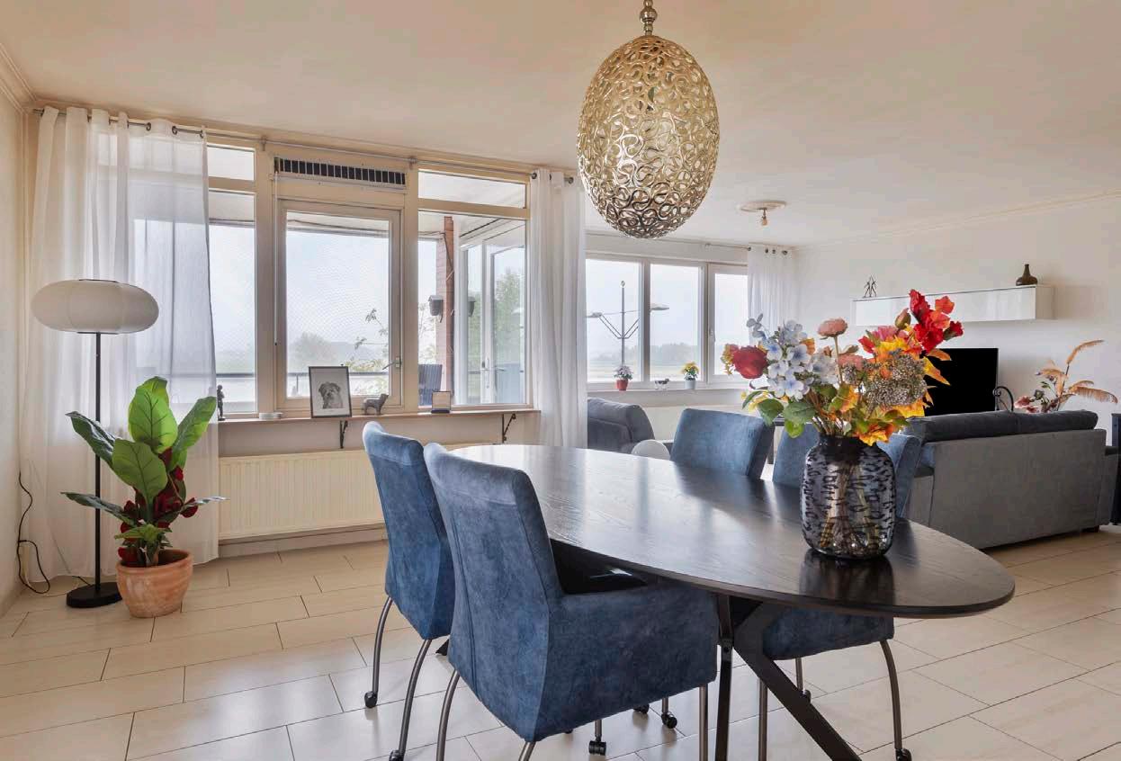 Ik ben samen met mijn man in dit appartement komen wonen nadat wij uit België terugkwamen naar Nederland. Omdat mijn man altijd schipper is geweest sprak het wonen aan de rivier de Maas ons natuurlijk direct aan. Het uitzicht is dan ook fenomenaal.