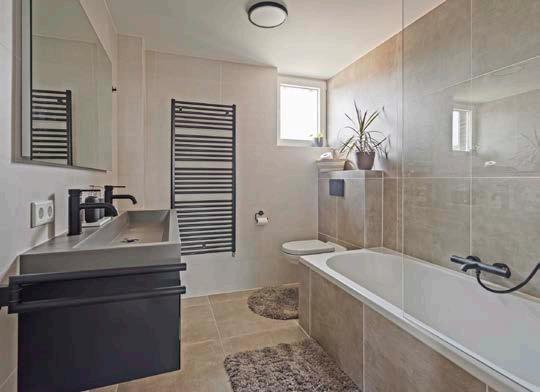De moderne badkamer op de eerste verdieping is ingericht met oog voor stijl en functionaliteit. Met een een ligbad met douche, een strak dubbel wastafelmeubel en een tweede toilet, biedt de badkamer alles wat je nodig hebt voor een ontspannen start van de dag. De hoogwaardige materialen en de moderne uitstraling maken dit een heerlijke plek om even helemaal tot rust te komen.