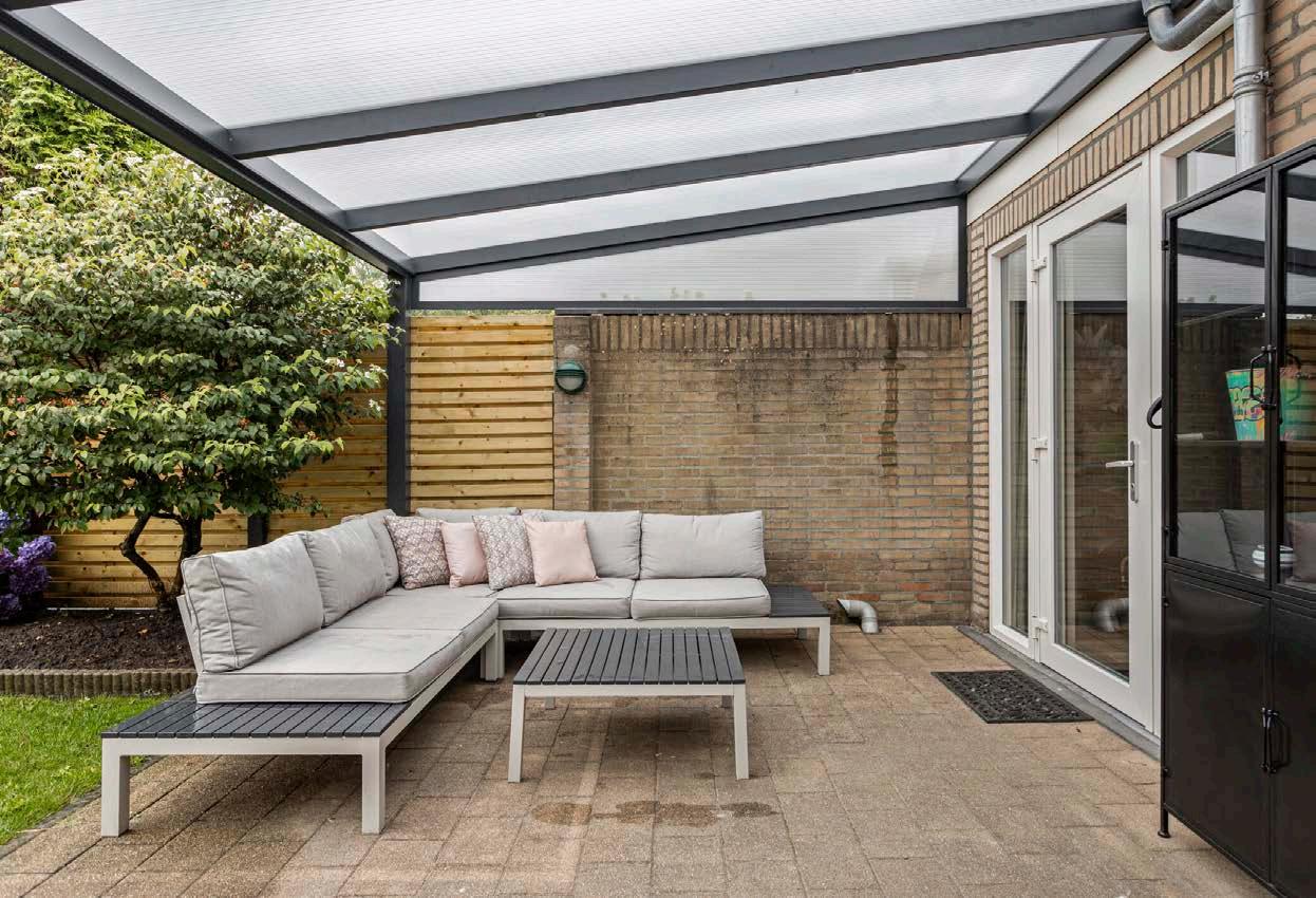 Geniet van de buitenlucht in de zonnige tuin op het noordoosten. Met een gezellige overkapping kun je hier het hele jaar door genieten van het buitenleven. Of je nu een boek leest in de schaduw, een barbecue organiseert met vrienden of de kinderen vrij laat spelen, deze tuin biedt de perfecte setting. Het groen en de rust zorgen voor een ontspannen sfeer waar je elke dag van kunt genieten.