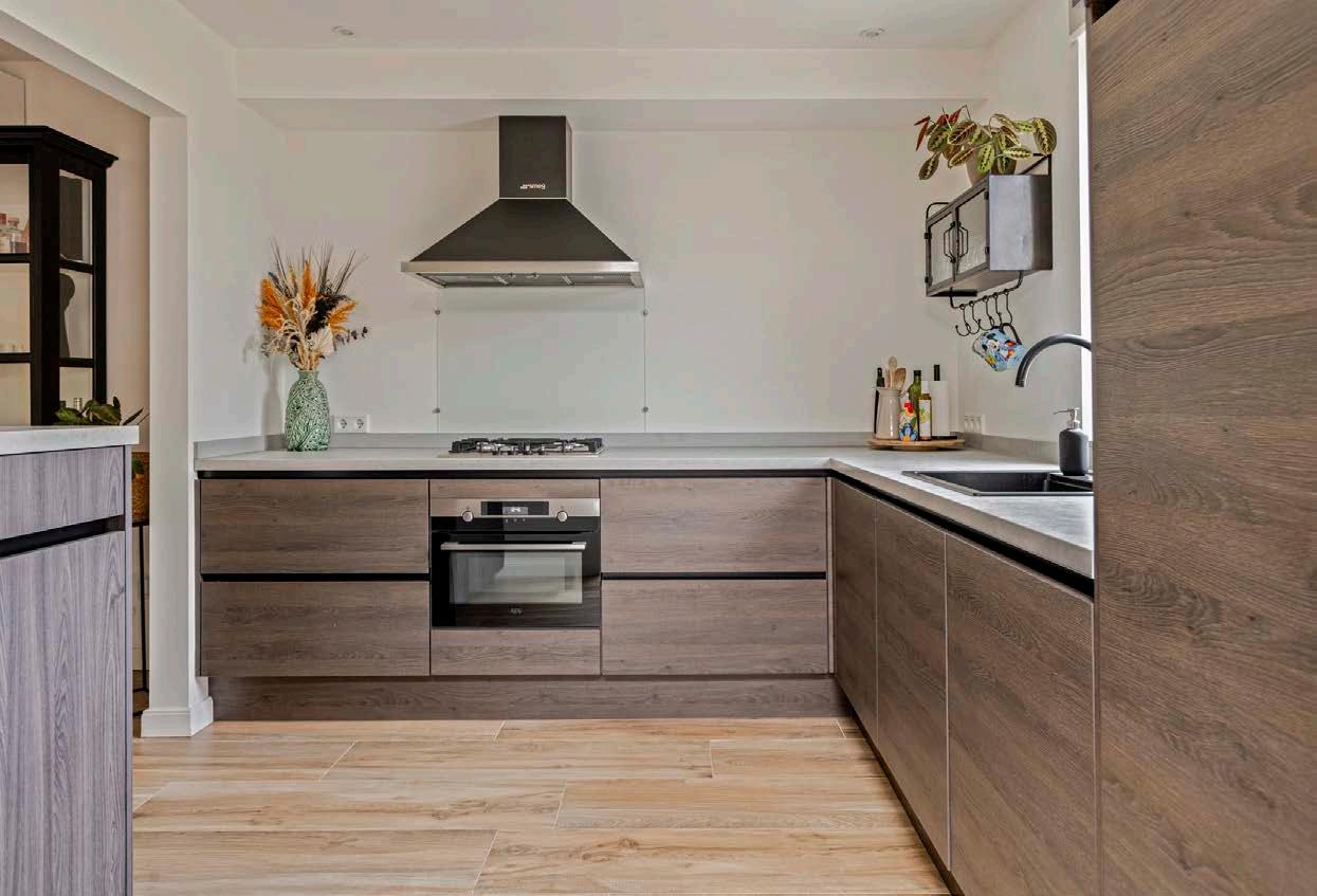 De luxe keuken is een waar paradijs voor iedere kookliefhebber. Voorzien van hoogwaardige inbouwapparatuur zoals een combi-oven, gaskookplaat, vaatwasser en koel-vriescombinatie, wordt koken hier een plezier. De stijlvolle afwerking en de praktische indeling maken de keuken niet alleen een lust voor het oog, maar ook bijzonder functioneel. Hier bereid je met gemak de heerlijkste maaltijden voor je gezin.