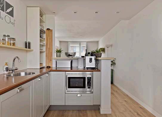 De open keuken is een culinair paradijs, uitgerust met inbouwapparatuur en veel opbergruimte. Het strakke en eigentijdse design maakt koken hier een waar genot. Je kunt makkelijk contact houden met je gasten in de woonkamer terwijl je een heerlijke maaltijd bereidt. Deze keuken is meer dan functioneel; het is een plek waar koken en gezelligheid samenkomen.