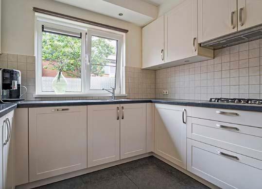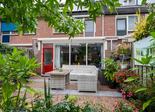De zonnige achtertuin is een waar paradijs voor tuinliefhebbers. Hier kun je tuinieren, barbecueën, of gewoon ontspannen met een goed boek. De tuin is groot genoeg voor kinderen om veilig te kunnen spelen en voor je huisdieren om rond te rennen. Bovendien biedt de ligging op het zuidoosten de perfecte balans tussen zonlicht en schaduw gedurende de dag. De overkapping zorgt er voor dat u al snel buiten kunt zitten.