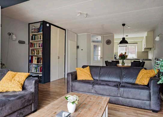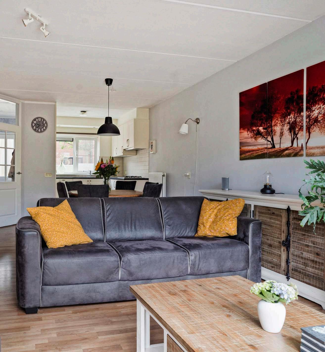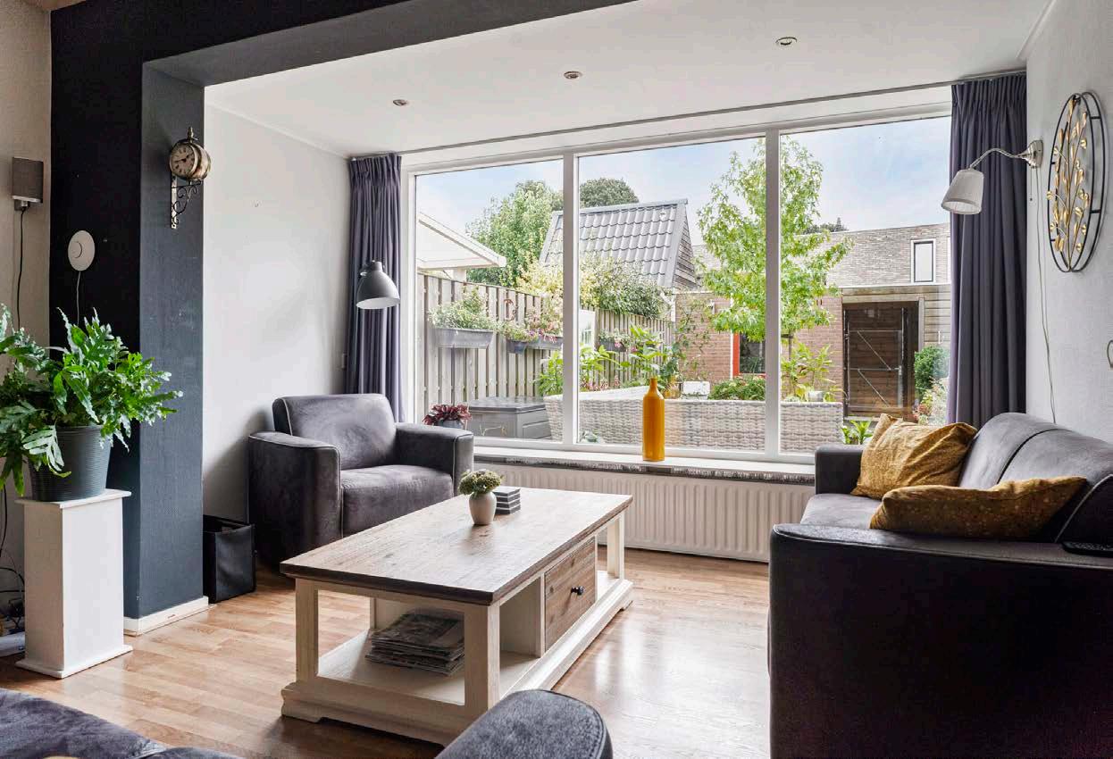 De uitgebouwde woonkamer is voorzien van grote ramen die veel licht doorlaten. De woonkamer is vierkant van formaat wat zorgt voor veel verschillende mogelijkheden van indelen.