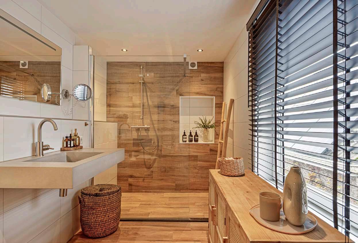 De sanitaire ruimte is onlangs helemaal vernieuwd en dat merk je aan alles. De wasmachine-hoek is praktisch, het wandcloset en fonteintje zijn strak en het geheel voelt als een frisse start van je dag of een prettige afronding van de avond.