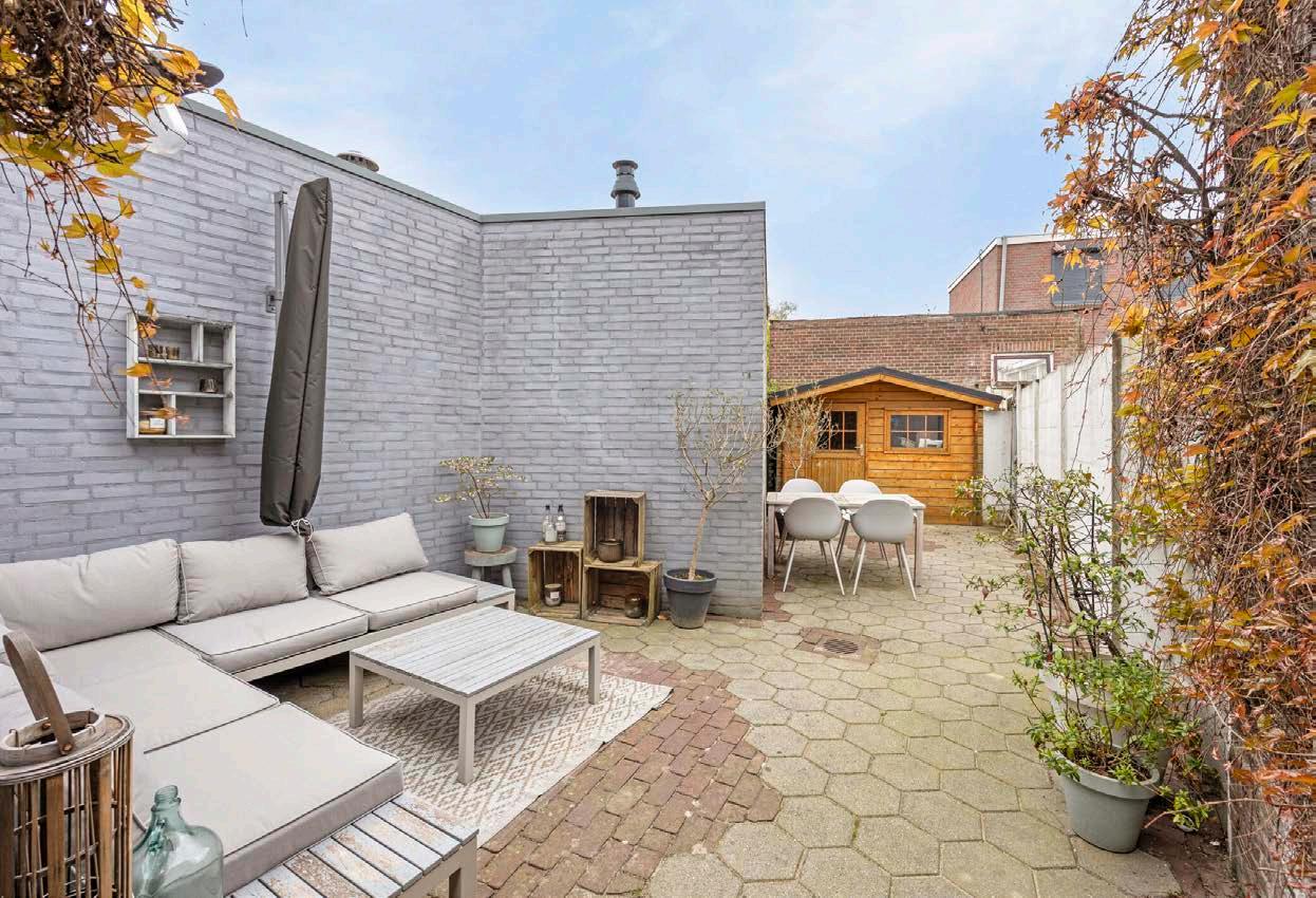 De achtertuin is een fijne plek waar je veel privacy hebt en waar de zon rijkelijk schijnt. Of je nu wilt relaxen, tuinieren of buiten eten, deze tuin is er perfect voor.