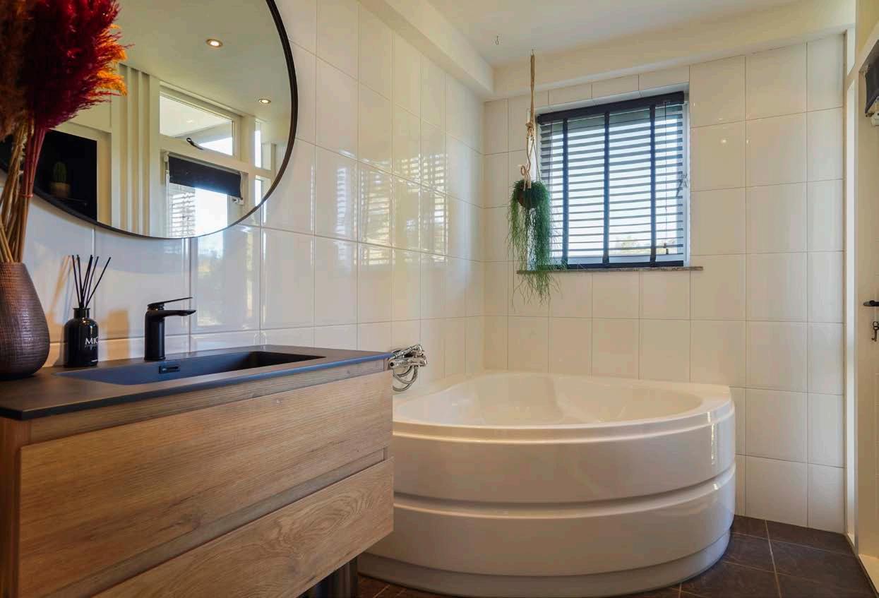 Een ander pluspunt aan deze woning is de grote badkamer met bad en ruime inloop douche, echt een plek om even tot jezelf te komen.