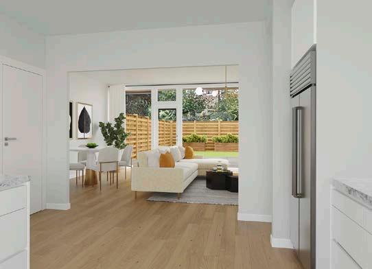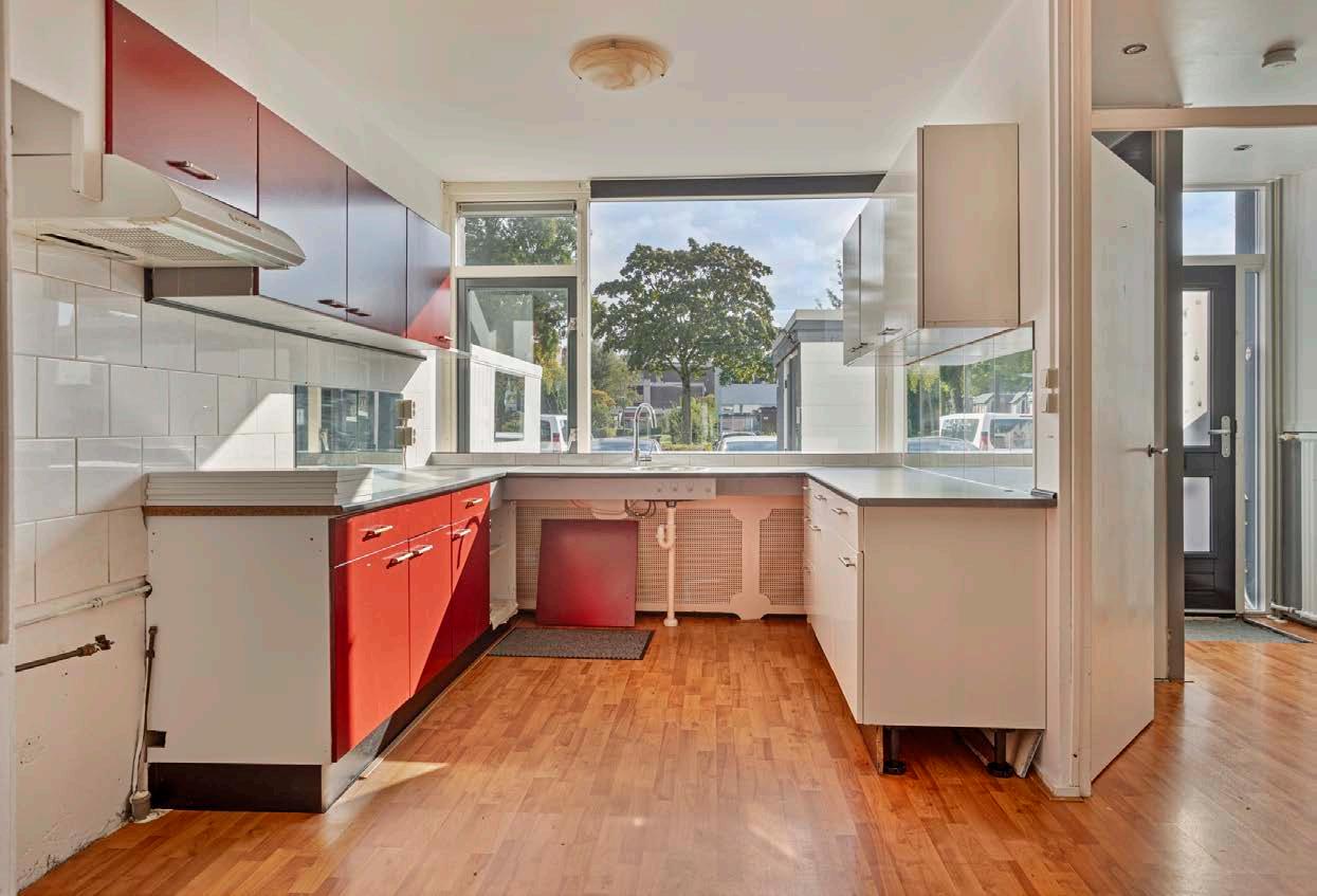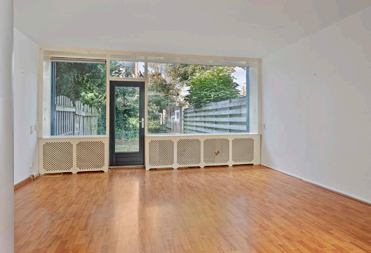 Bij binnenkomst in de woning aan valt direct op hoe licht en ruim het is. De woonkamer heeft grote ramen die veel natuurlijk licht binnenlaten en uitkijken op de zonnige tuin.