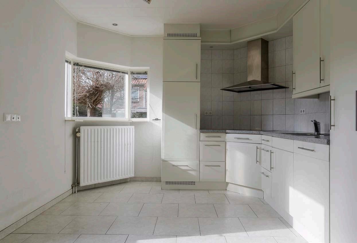 De woonkamer leidt naar de open woonkeuken. Ook de keuken is lekker licht en ruim opgezet. Deze ruimte is voorzien van een kookplaat, afzuigkap, oven, magnetron, vaatwasser en koelkast. Bovendien is er meer dan genoeg werk- en opbergruimte om uitgebreid te kokkerellen. De keuken is afgewerkt met plavuizen op de vloer.