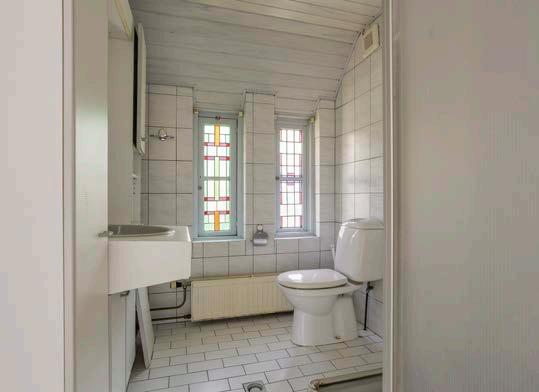 De badkamer bevindt zich op de eerste verdieping. Deze ruimte is voorzien van een douchecabine, wastafel en toilet. In de badkamer zie je duidelijk het karakteristieke van de jaren ‘30 terug door de leuke glas-in-lood ramen.