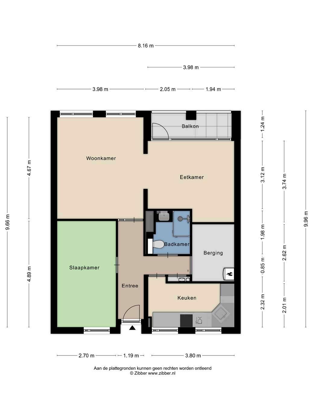 Het appartement heeft momenteel een eetkamer en één slaapkamer, maar biedt de mogelijkheid om eenvoudig terug te keren naar twee slaapkamers. Mocht je de voorkeur geven aan een tweede slaapkamer, dan kan dit eenvoudig weer worden gerealiseerd.
