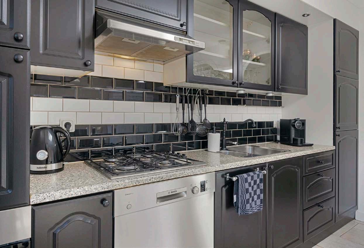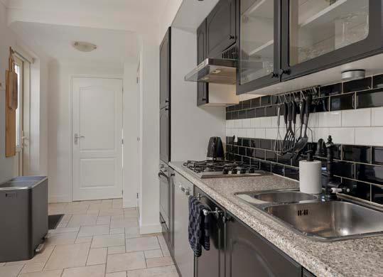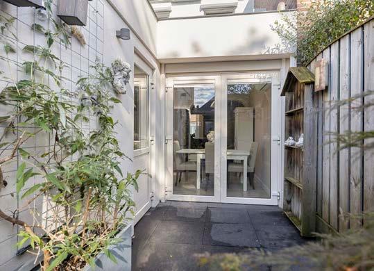 Achterin de woning vind je de grote woonkeuken, die met zijn rechte en moderne opstelling van alle gemakken is voorzien. Stel je voor dat je hier culinaire hoogstandjes bereidt, terwijl de dubbele tuindeuren openstaan en de frisse lucht naar binnen stroomt. De keuken biedt een prachtig uitzicht op de zeer verzorgde achtertuin, die met zijn zuidwesten ligging garant staat voor zonnestralen de hele dag door.