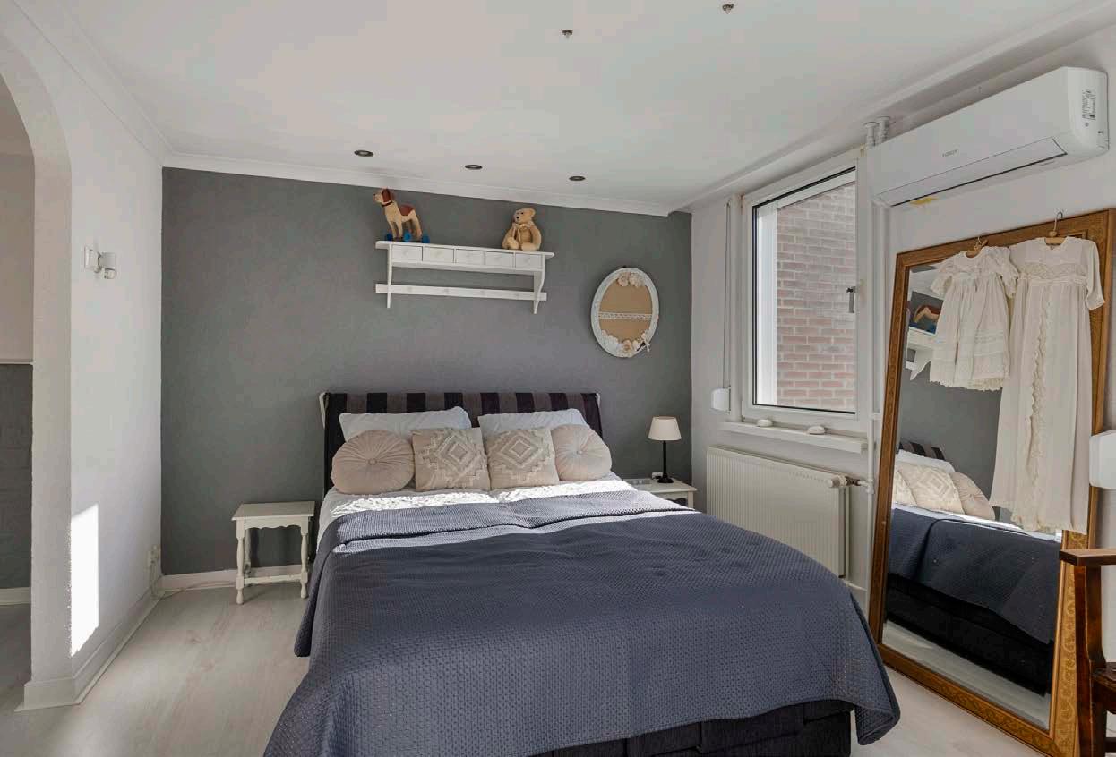 De eerste verdieping, bereikbaar vanuit de hal, leidt je naar een overloop die toegang biedt tot alle vertrekken. Hier vind je twee slaapkamers, allemaal met een laminaatvloer en strak stukadoorswerk aan de wanden en plafonds. De kunststof kozijnen met draai-/kiepramen zorgen voor veel natuurlijk licht en zijn volledig voorzien van dubbel glas voor optimale isolatie.