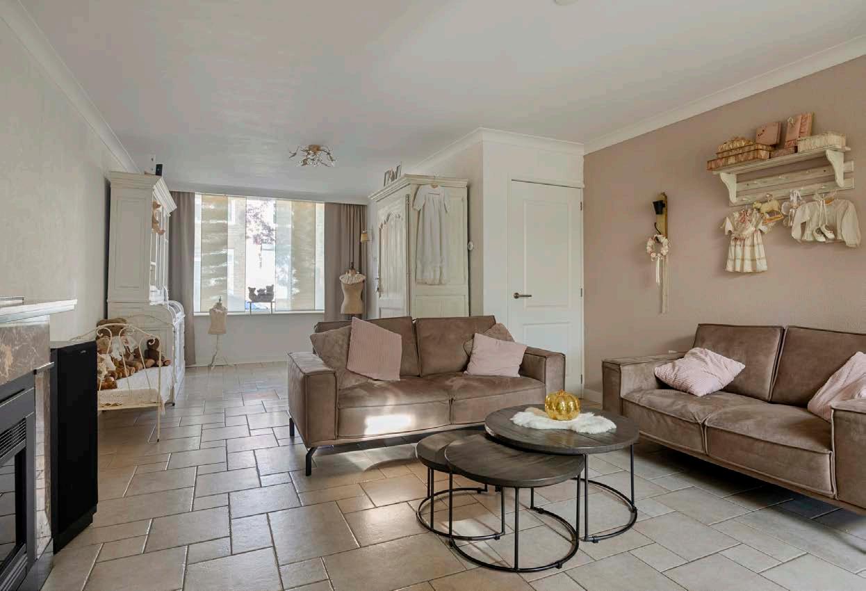 Ga verder naar de royale woonkamer waar een sfeer verhogende elektrische kachel de ruimte gezellig verwarmt. Hier ligt een mooie tegelvloer met vloerverwarming die tijdens koude winteravonden voor een extra stukje comfort zorgt. Het lichte, met inbouwspots afgewerkte plafond, biedt een moderne toets aan de woonkamer.