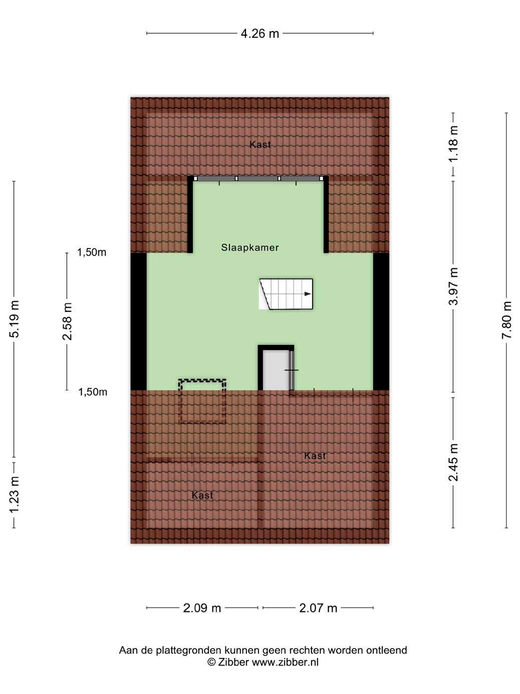 De zolderverdieping bereik je via een vaste trap. Deze grote zolderkamer heeft dankzij de dakkapel aan de achterzijde een overvloed aan licht en ruimte. De kamer is ideaal als extra slaapkamer of als thuiskantoor, met handige opbergruimte onder de schuine kanten.