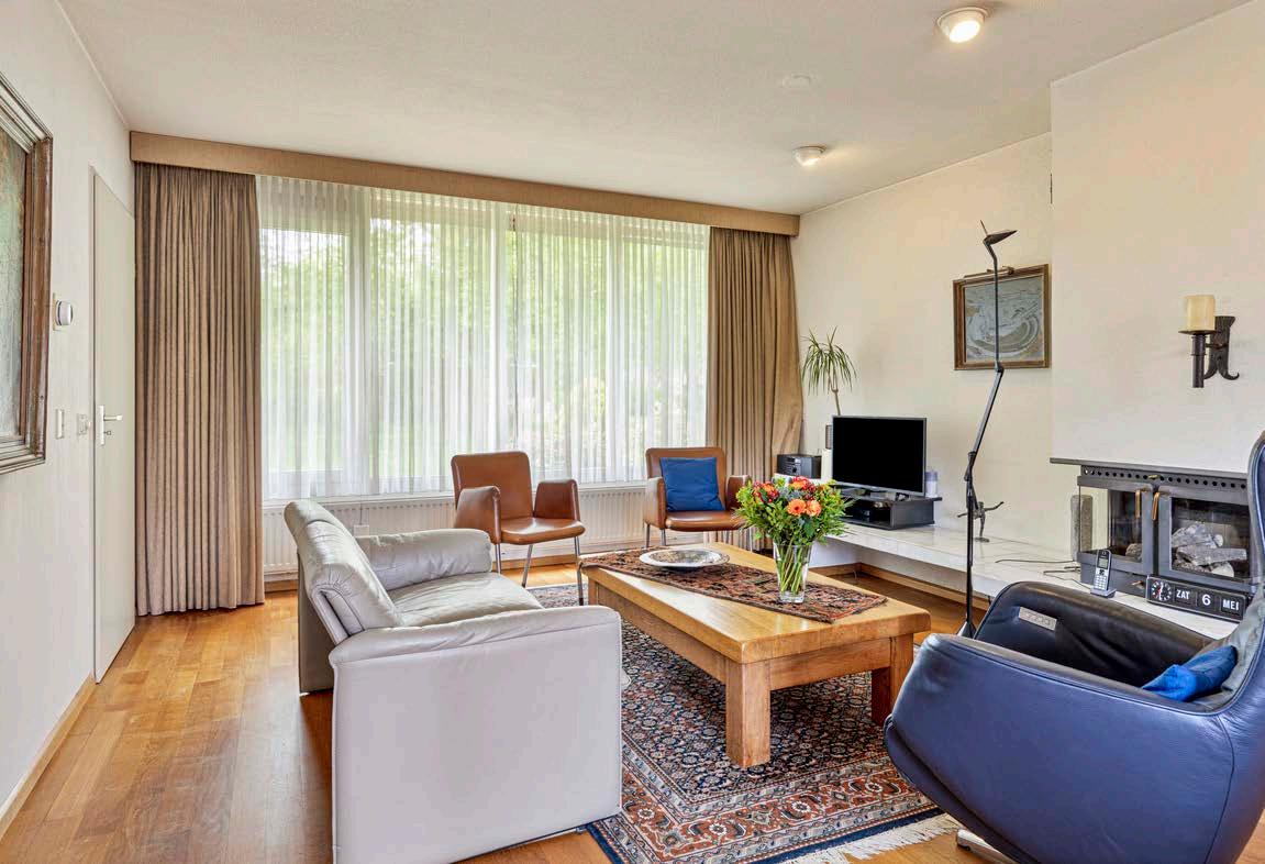 De woonkamer is gelegen aan de straatzijde en door de grote raampartijen is er veel lichtinval. Door middel van de twee schuifdeuren in de woonkamer en de zijdeur is de achtertuin toegankelijk. Het geheel is voorzien van een nette vloer en biedt een fijne zithoek.