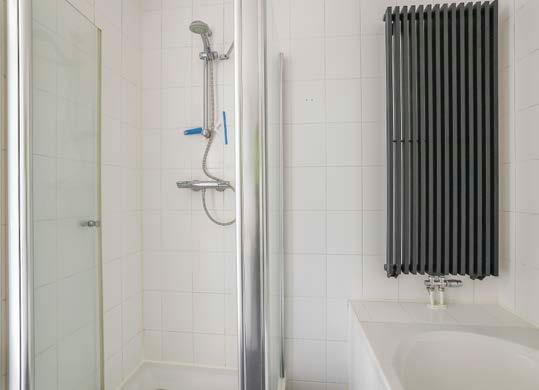 De badkamer is deels betegeld en uitgerust met een ligbad, douche en een dubbel wastafelmeu bel. Hier kun je heerlijk tot rust komen!