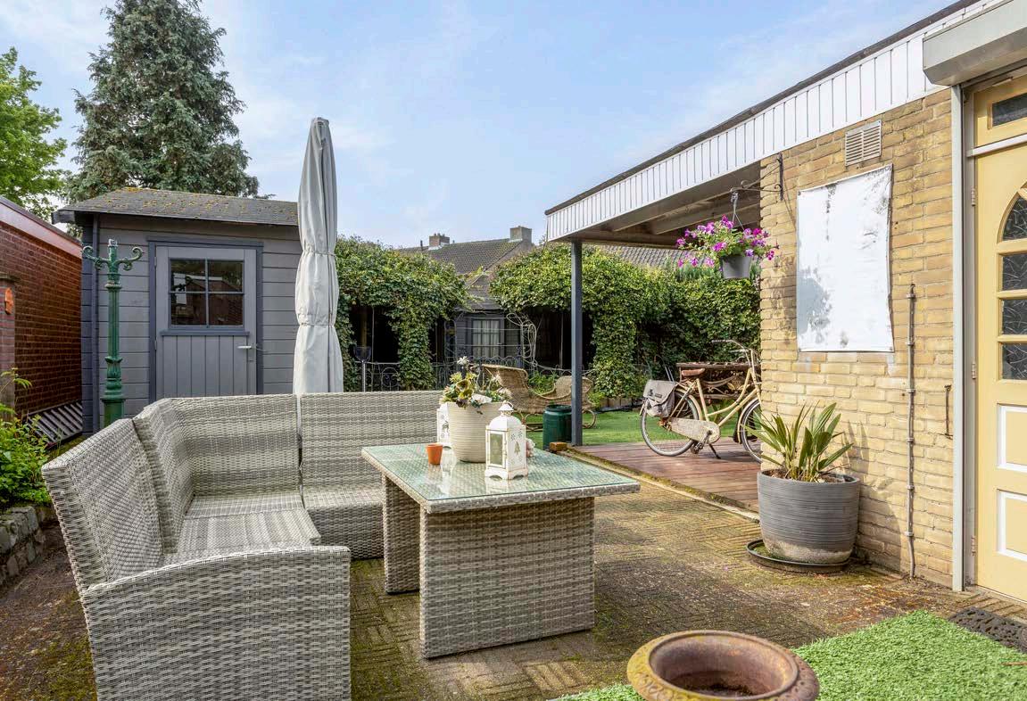 Geniet in de ruime tuin en breng gezellige avonden door onder de overkapping. Met de tuin op het oosten ben je verzekerd van veel zon op de juiste momenten van de dag, terwijl je op warme dagen ook genoeg schaduwplekken ter beschikking hebt. Naast een garage (voorzien van elektra) beschikt de woning ook over een houten tuinhuis. De tuin is verder voorzien van een vijver en 2 houten bergingen.