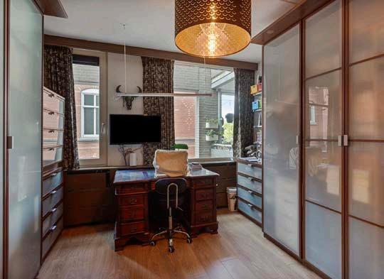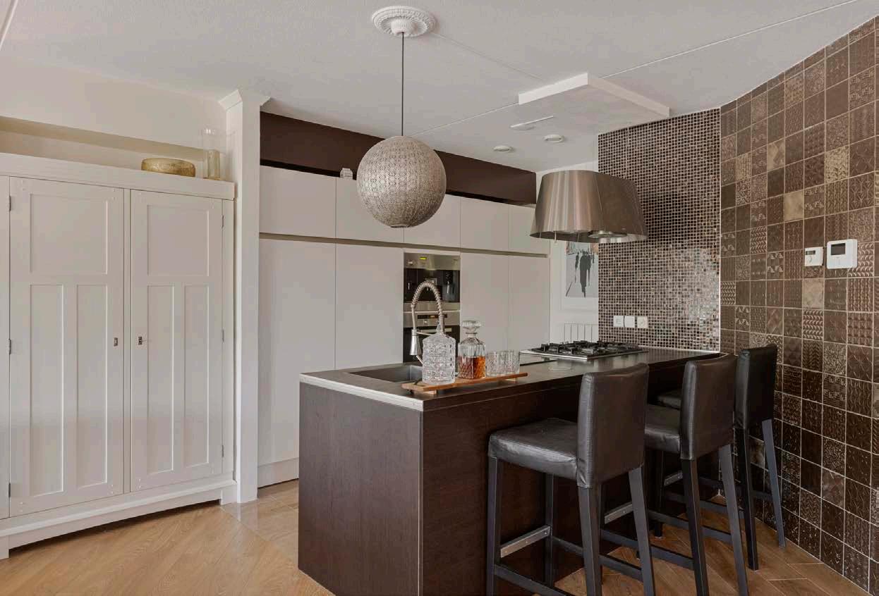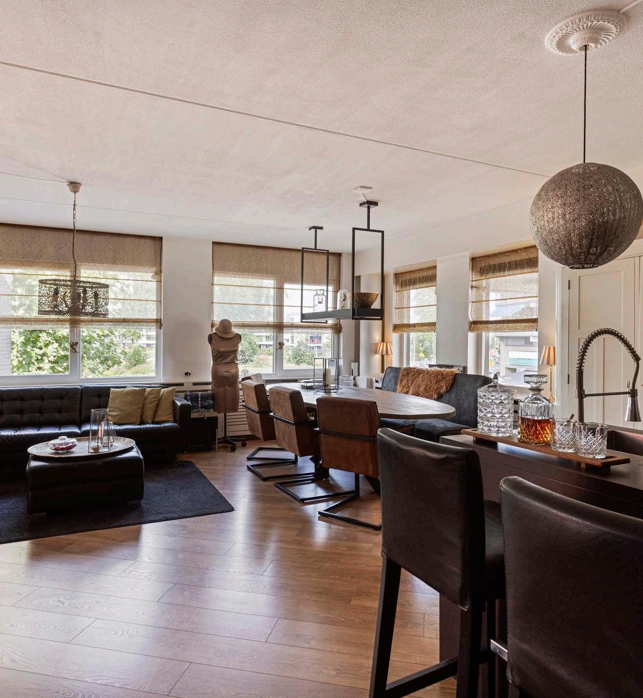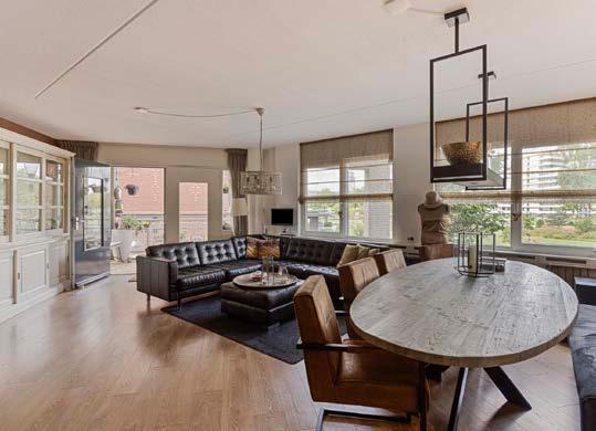 De woonkamer is ruim en praktisch in te delen, ideaal voor zowel ontspanning als sociale gelegenheden. De grote ramen bieden een prachtig uitzicht over het park, wat een gevoel van rust en ruimte toevoegt aan de stedelijke locatie.