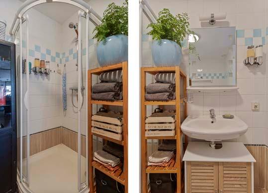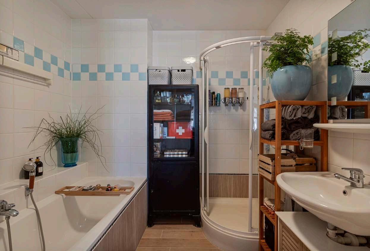 De badkamer is uitgerust met een ligbad, douchecabine en vaste wastafel en biedt daarmee alle comfort die je nodig hebt. Het separaat toilet zorgt voor extra gemak.