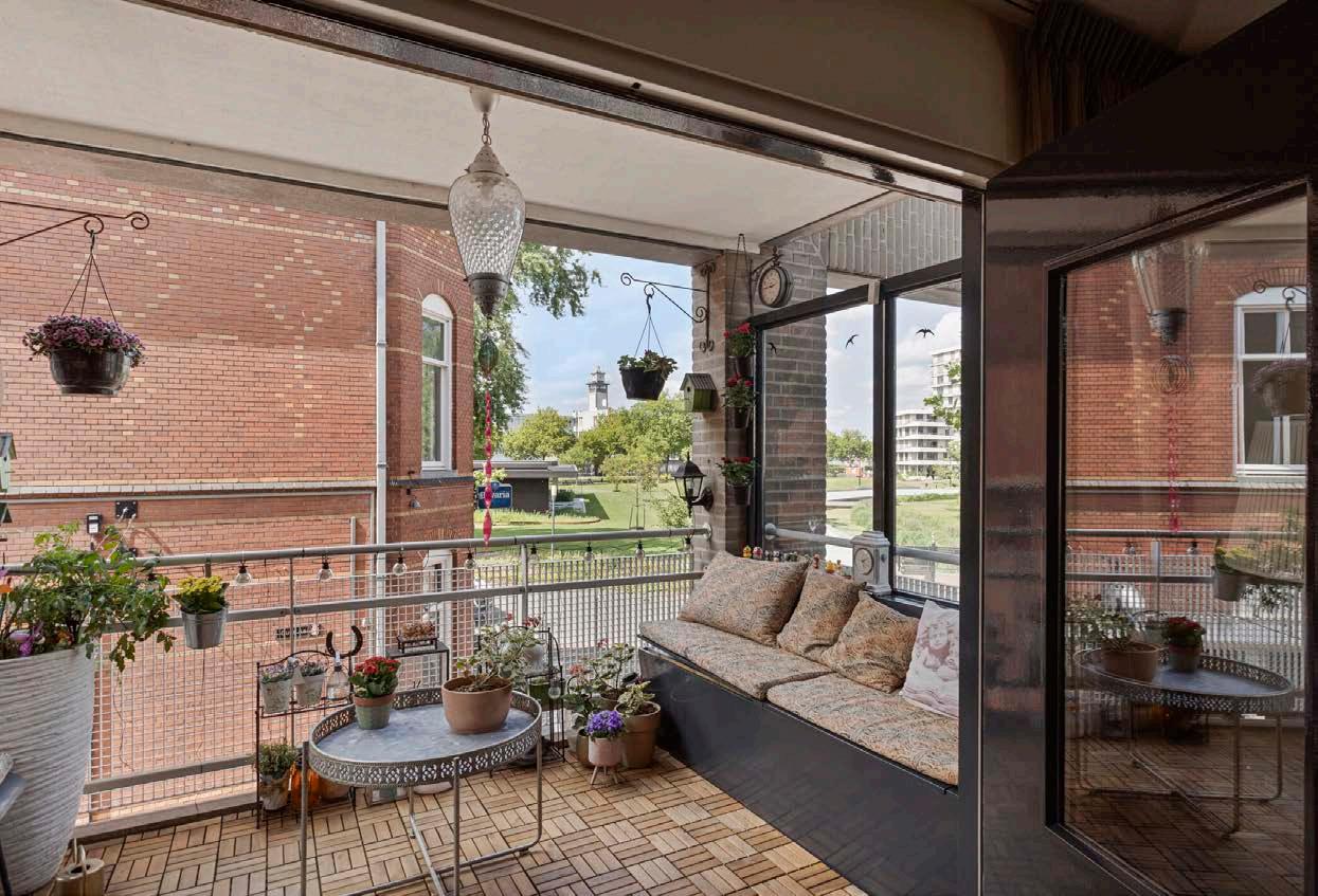 De woning heeft een fijn balkon met een leuk uitzicht.