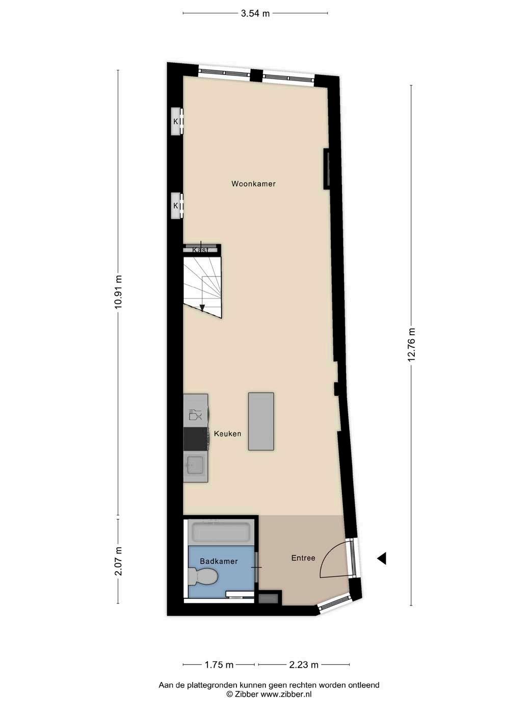 De woonkamer biedt voldoende ruimte voor zowel een zithoek als een eethoek. De ramen in de woonkamer geven uitzicht op het centrum van Zutphen!