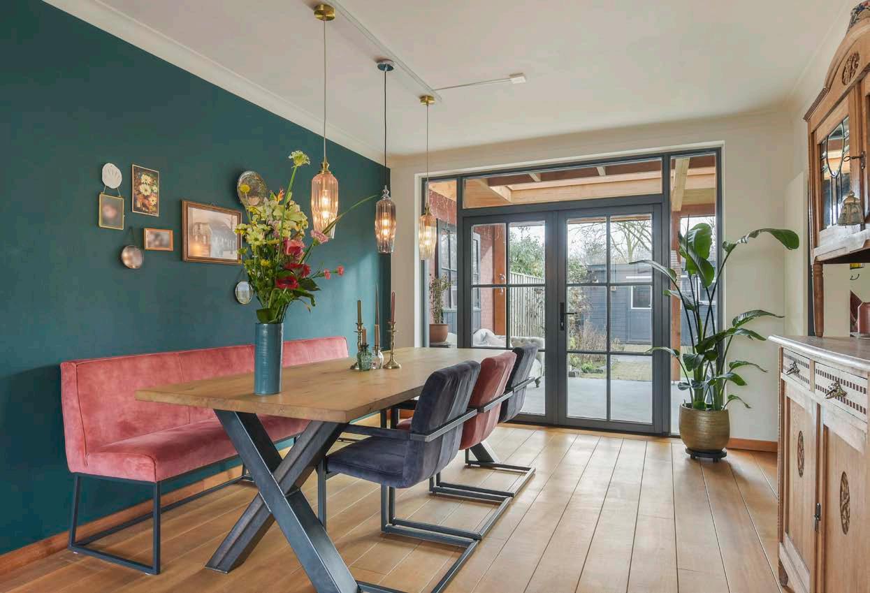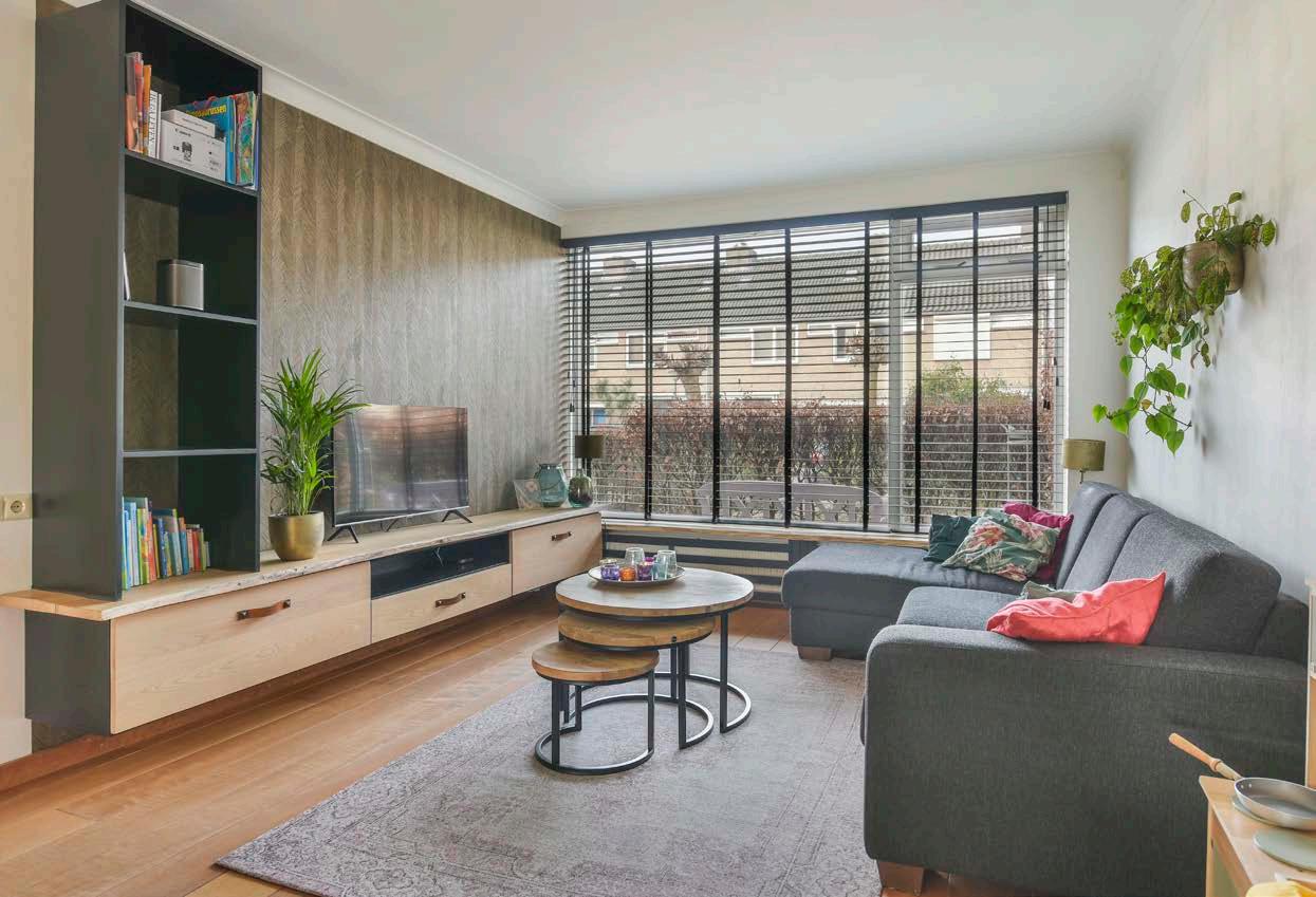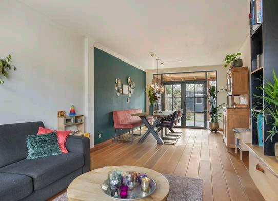 De ruime woon-/eetkamer is heerlijk licht dankzij het grote raam aan de voorzijde en de openslaande deuren aan de achterzijde. Het geheel is zeer smaakvol afgewerkt met Robijn houten vloerdelen en strak stucwerk op de wanden, waardoor je beschikt over een ideale basis voor verschillende interieurstijlen. In de woonkamer is meer dan voldoende ruimte voor een comfortabele zithoek en een gezellige eethoek.