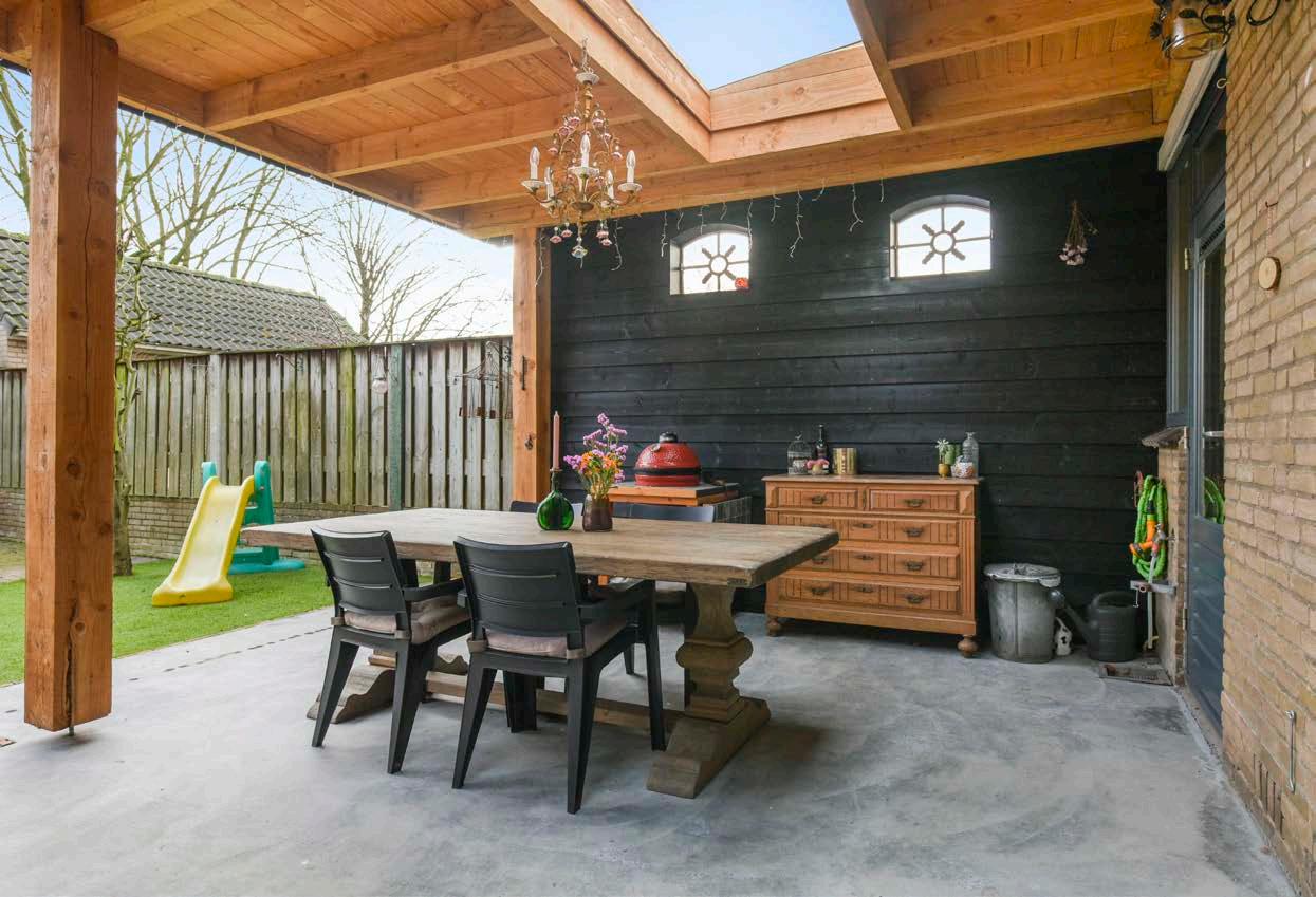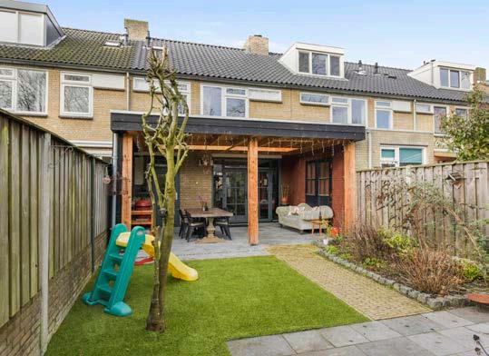 De tuin biedt veel privacy en deze is ingericht met direct achter de woning een mooie overkapping met een betonnen vloer, kunstgras en borders met diverse beplanting. Verder ben je hier voorzien van een grote berging met elektra en is de tuin toegankelijk via een achterom.