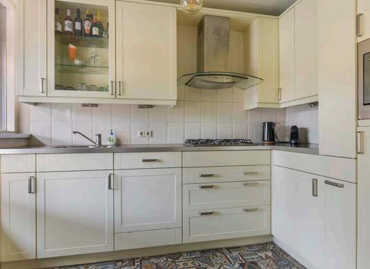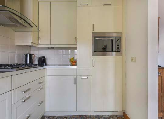 De keuken zelf is geplaatst in een L-opstelling en deze heeft een moderne uitstraling. In de keuken beschik je over voldoende kast- en werkruimte en daarnaast ben je hier uiteraard voorzien van diverse inbouwapparatuur. Wij noemen: een 5 pits gaskookplaat, afzuigkap, oven, close-in-boiler, vaatwasser en een koelkast.