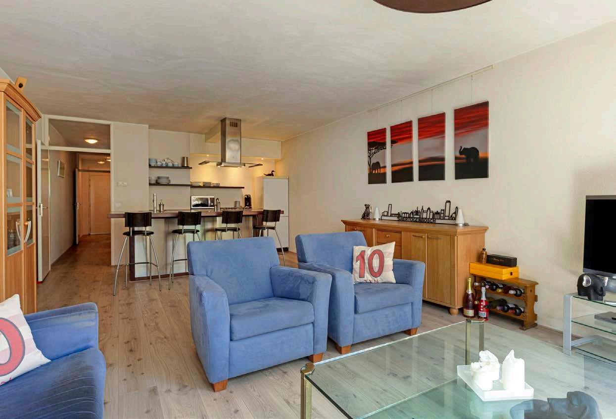 Entree appartement kom je in de hal die toegang geeft tot alle vertrekken. Rechtdoor de grote lichte woonkamer en vrije open keuken ideaal met verhoogd kookeiland voorzien van gasfornuis, (convectie)oven, vaatwasser. De keuken met voldoende kastruimte en plek voor een koelkast.