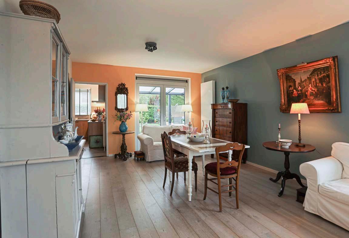 Deze woning heeft een zeer ruime en lichte woonkamer die afgewerkt is met een mooie parketvloer, strak gestucte wanden in moderne kleurstelling en een sfeervolle elektrische haard. Er is voldoende ruimte om een comfortabele zithoek, ruime eettafel en een tweede zitje. Middels de openslaande tuindeuren heb je hier een prachtig uitzicht over de tuin.