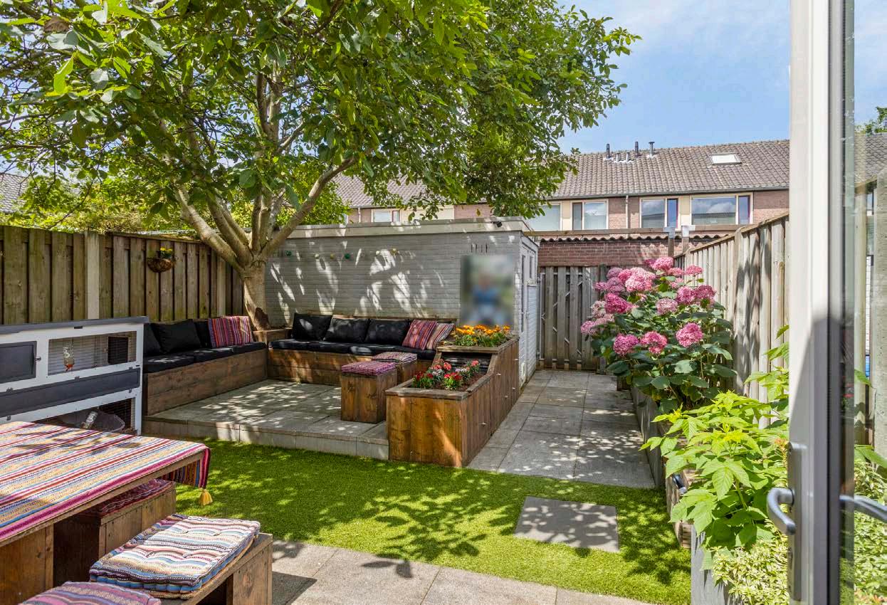 De tuin ligt op het westen, waardoor je optimaal kunt genieten van de middag- en avondzon. Dit is ideaal voor buitenactiviteiten, barbecues of gewoon ontspannen in de zon. De geur van vers gemaaid gras en bloeiende bloemen maakt het genieten compleet. De tuin biedt een perfecte balans tussen zon en schaduw en is een heerlijke plek om te ontspannen of om te tuinieren.