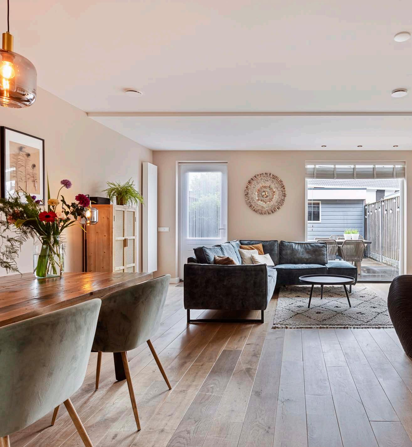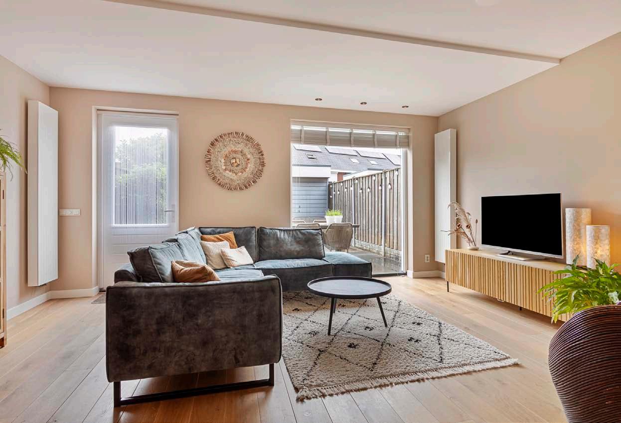 De royale woonkamer is een oase van ruimte en licht, perfect voor gezellige avonden met familie en vrienden.