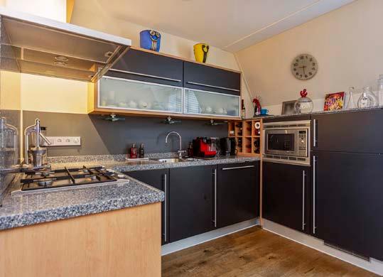 De keuken is verzorgd en voorzien van alle gemakken, zoals een combi-magnetron, koel-vriescombinatie, vaatwasser en een 4-pits gasfornuis.